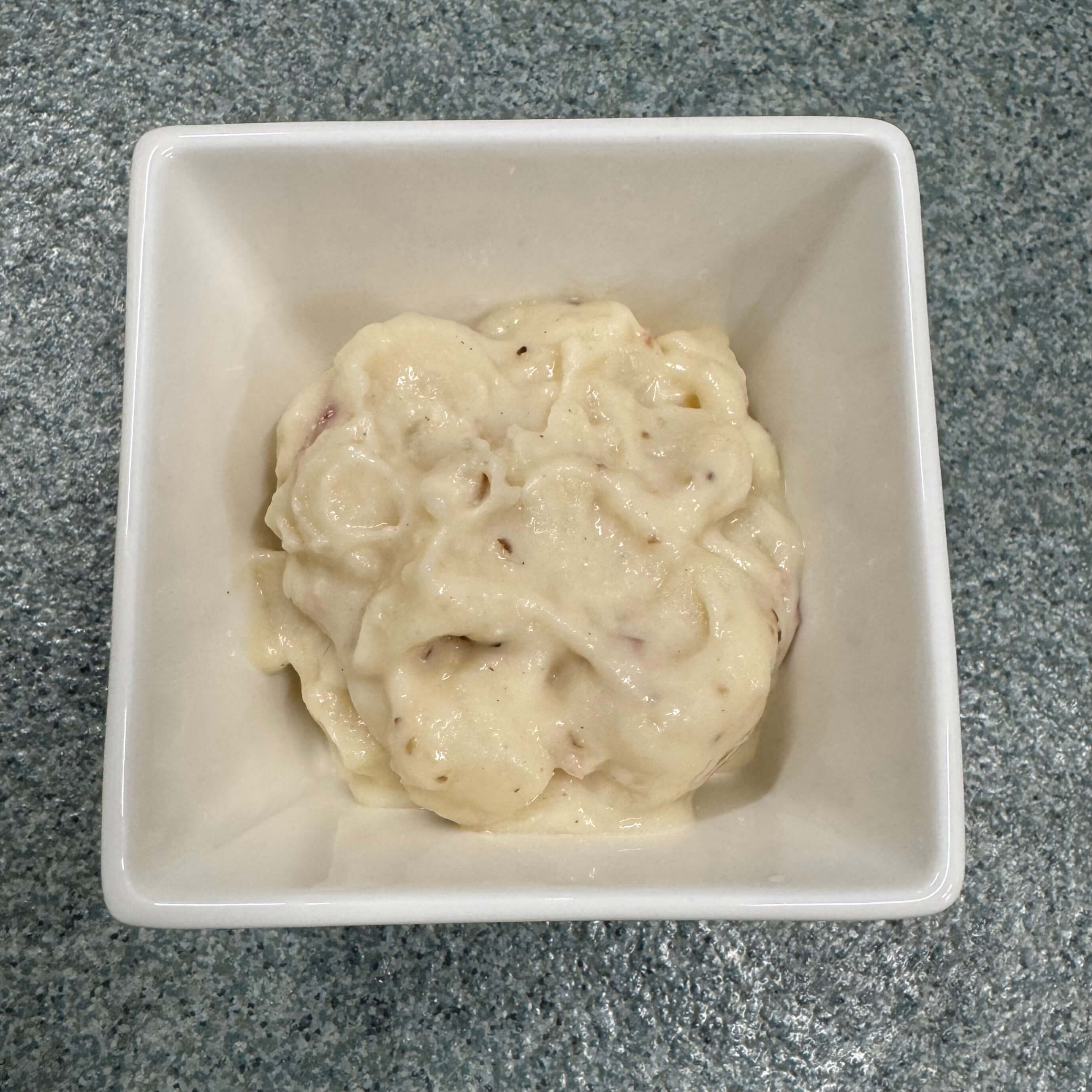 | 原材料名 | ポテトフライ、ホワイトソース、糖類(水飴、砂糖)、ショルダーベーコン、タマネギ、食用植物油脂、香辛料、食塩、醸造酢、コンソメシーズニング、オニオンエキス/増粘剤(加工澱粉、増粘多糖類)、グリシン、酢酸Na、調味料(アミノ酸等)、pH調整剤、キトサン、リン酸塩(Na)、香料、ビタミンB1、酸化防止剤(V.C)、カラメル色素、発色剤(亜硝酸Na)、(一部に小麦・卵・乳成分を含む) |