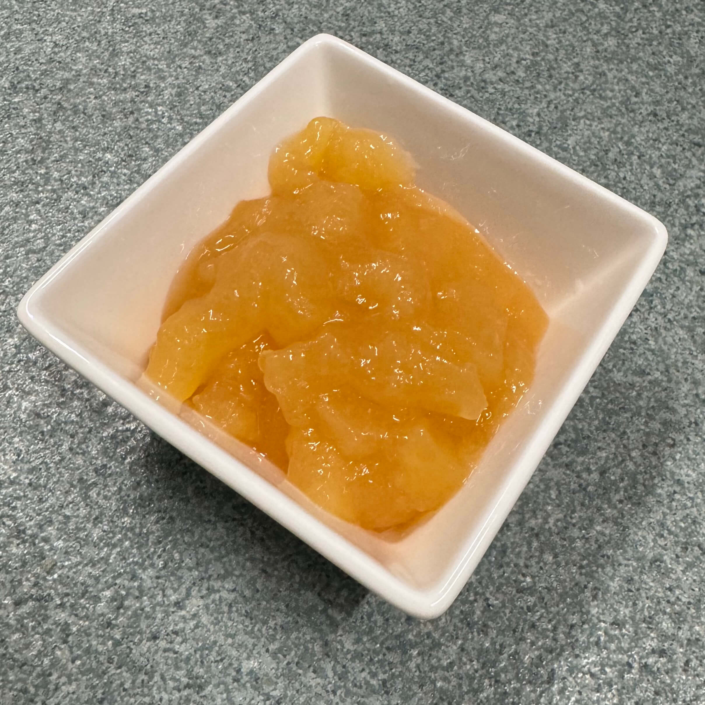 | 原材料名 | りんごシロップ漬け(りんご、砂糖)(中国製造)、 りんごピューレ、 糖類(異性化液糖、砂糖)、 シトラスファイバー(オレンジを含む) /増粘剤(加工でん粉、ペクチン)、香料、 酸味料、 塩化Ca |
